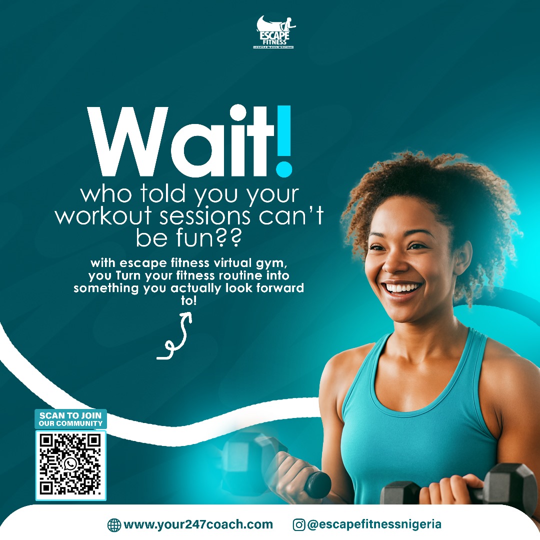 Follow us on Instagram @escapefitnessnigeria and start your fitness escape—because with Escape Fitness, working out just got fun!